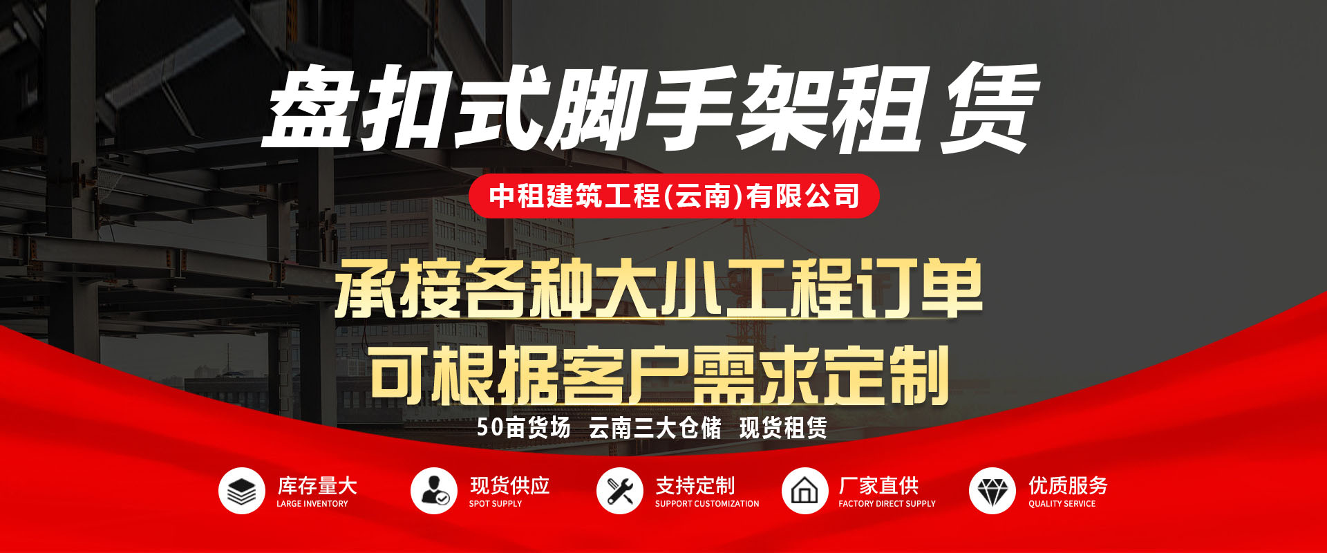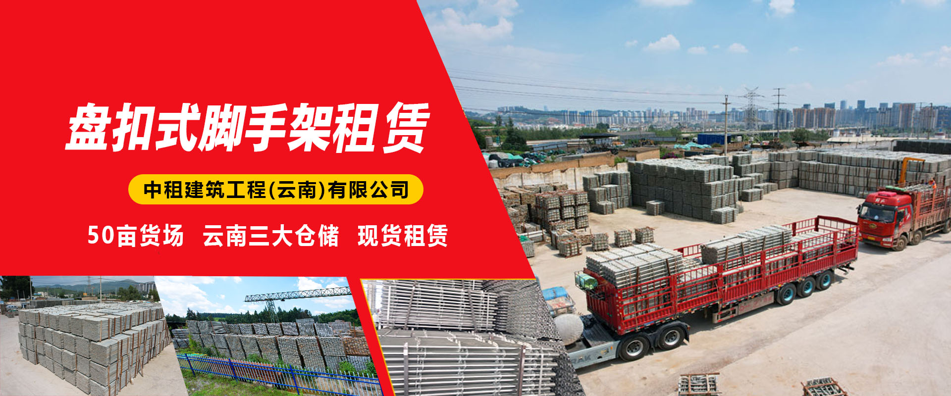 中租建筑工程(云南)有限公司主要从事盘扣式脚手架租赁、方柱扣租赁、模架方案设计、模架专业分包等业务。公司总部位于春城昆明,目前有广东(广州)、河北(任丘)、云南(昆明)三个物资基地,并成立专业劳务分包公司。